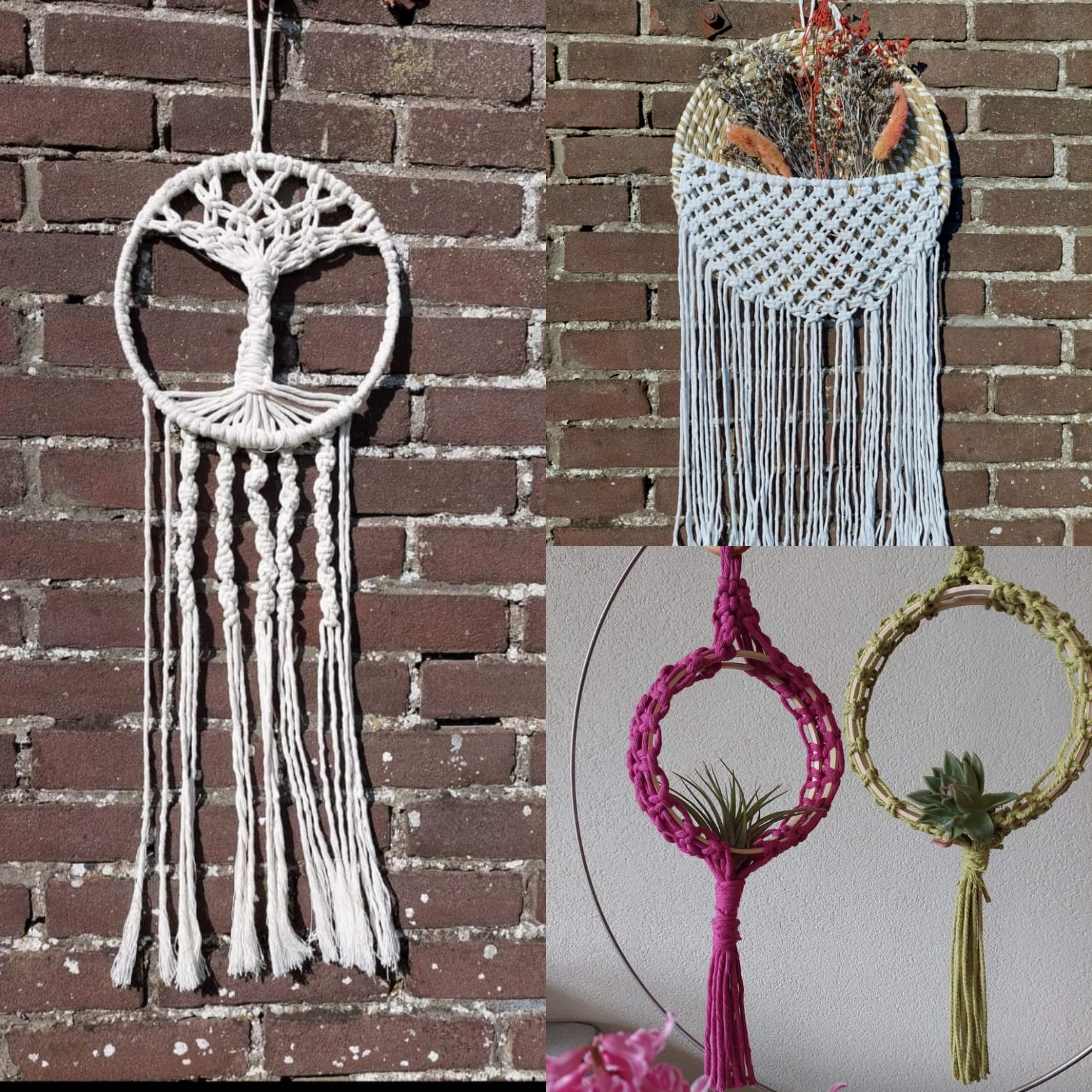 Workshop 3: Kleine plantenhanger met twee houten ringen van 15 cm. (€25,-)